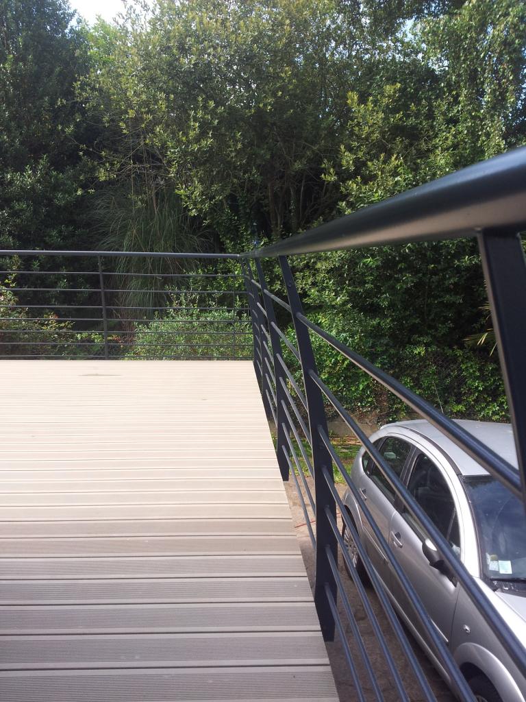 Structure en acier galvanisée et bois, garde corps en acier galvanisée avec sous couche époxy et thermolaquage